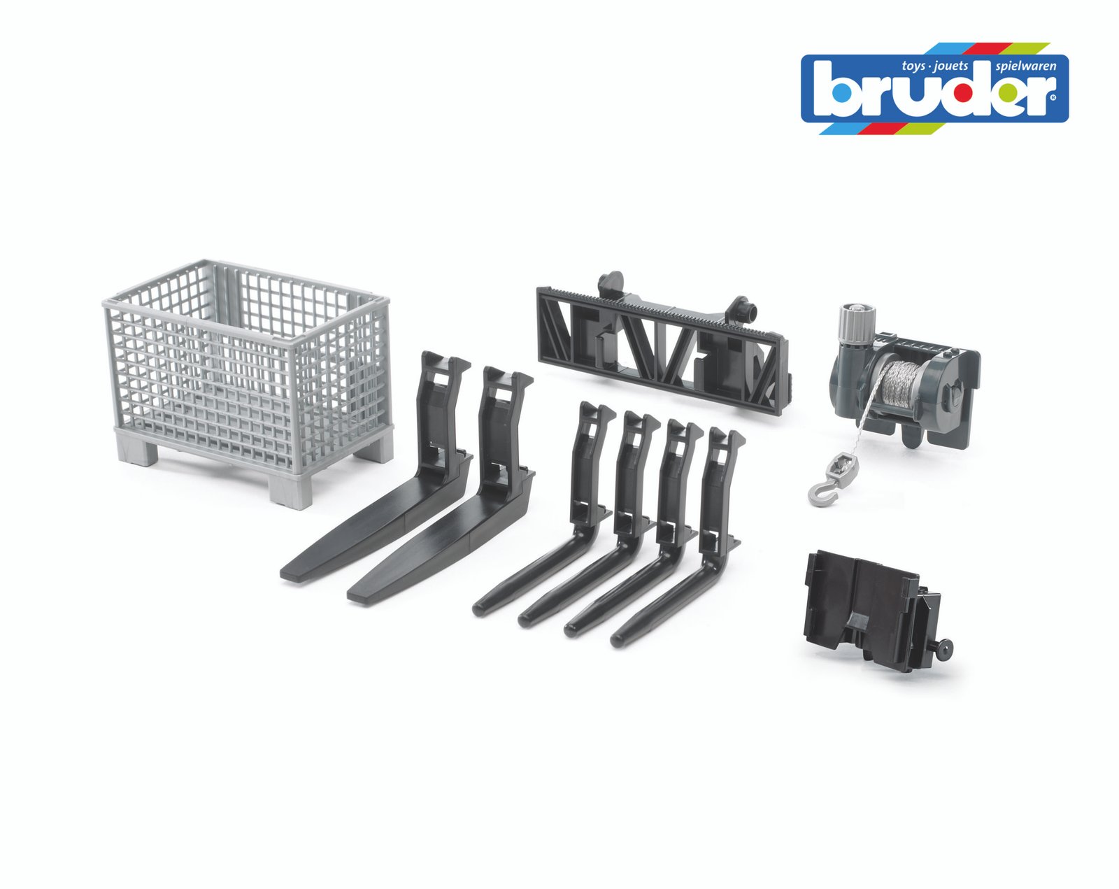 Zubehör: Gitterpalette, Seilwinde und Frontladergabeln
