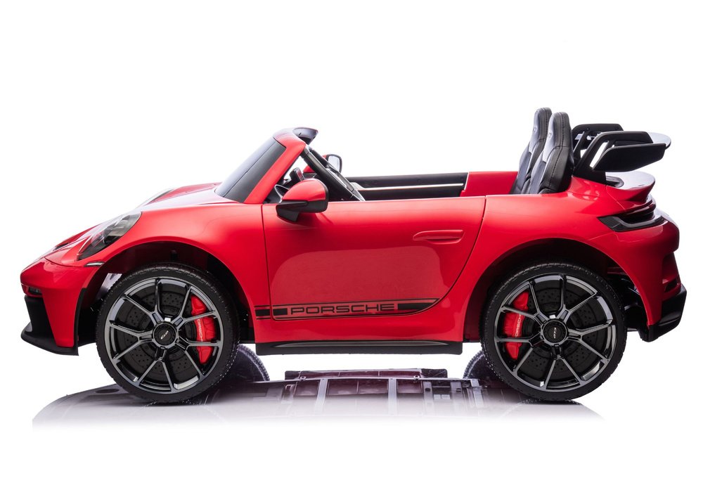 Für Sicherheit sorgt die automatische Bremse beim Loslassen des Gaspedals, während der weiche Sitz aus Öko-Leder und EVA-Vollgummireifen hohen Fahrkomfort bieten. LED-Frontscheinwerfer, Rücklichter und das beleuchtete Armaturenbrett sorgen für einen realistischen Look. Das integrierte Musikpanel mit USB-, MP3- und Bluetooth-Funktion macht jede Fahrt zu einem echten Erlebnis – fast wie im Original-Porsche!