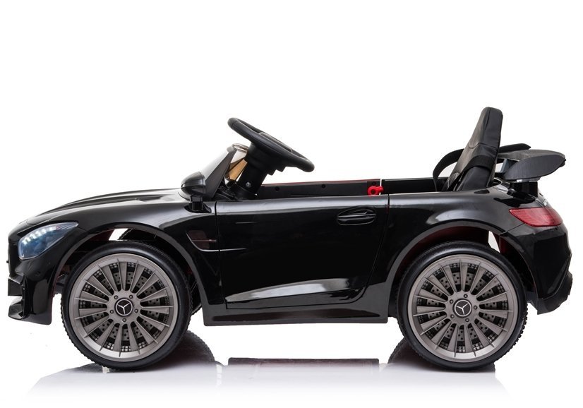 LED-Frontscheinwerfer, Rücklichter und ein beleuchtetes Armaturenbrett sorgen für realistischen Fahrspaß – ergänzt durch Musikfunktionen mit USB-, SD- und MP3-Anschluss sowie lustige Melodien und eine Hupe.