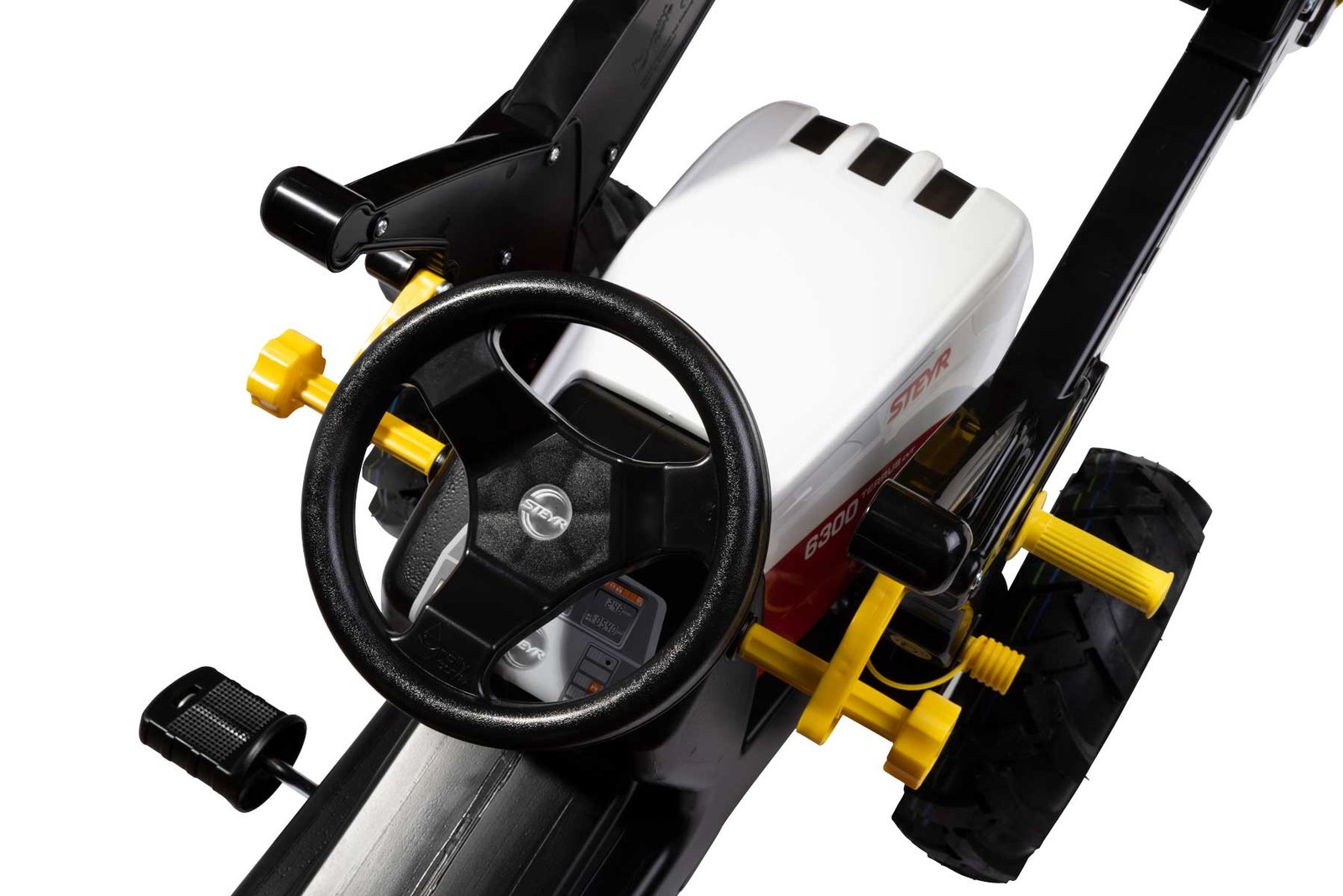 Die robuste Lenkstange ermöglicht eine präzise Lenkung und sorgt für ein angenehmes Fahrgefühl. Zusätzlich kann der Traktor mit verschiedenen Funktionszubehörteilen nachgerüstet werden, um das Spielerlebnis noch weiter zu verbessern.